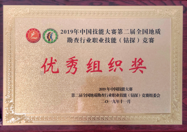 11月6日,山西省矿业联合会赵润才会长代表2019年中国技能大赛第二届全国地质勘查行业职业技能(钻探)竞赛组委会向山西总队颁奖,山西总队作为本次竞赛的参加单位,全程支持活动开展,荣获了竞赛“优秀组织奖”殊荣,山西总队党委书记、总队长赵景勋代表山西总队接受证书。