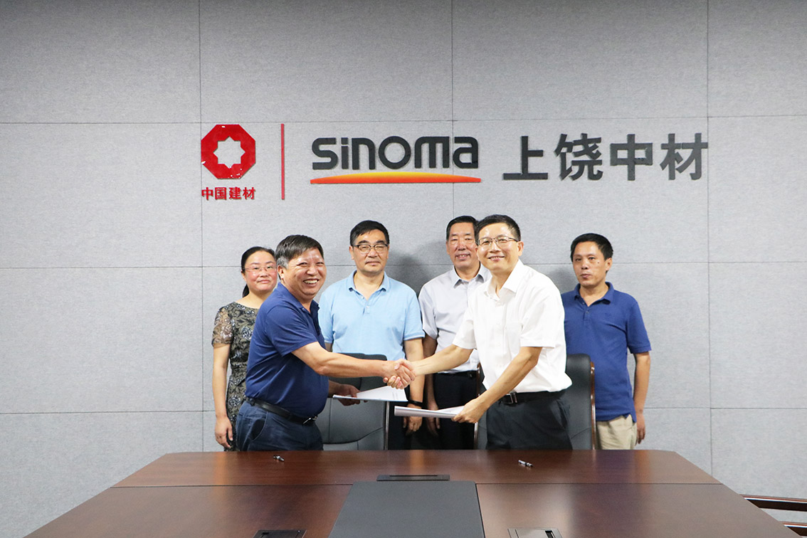上饶中材机械有限公司党委书记、执行董事吴新其见证签约仪式,江西总队总队长助理、江西中材勘测设计有限公司常务副经理蒋丽云参加签约仪式。
