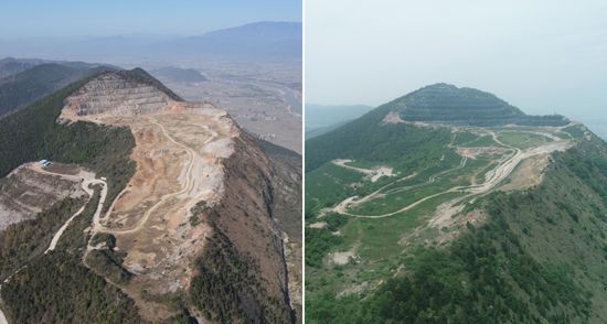中材汉江矿山矿山专项生态环境治理前(左)、治理后(右)