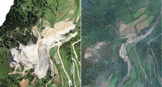 勉县老道寺矿山地质环境恢复治理前(左)、治理后(右)
