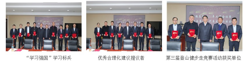 会议表彰了2020年度总队先进集体、先进个人、地质工龄满30年工作者、安全班组、“学习强国”平台“学习标兵”、优秀合理化建议提议者、第三届登山健步走活动获奖单位等。