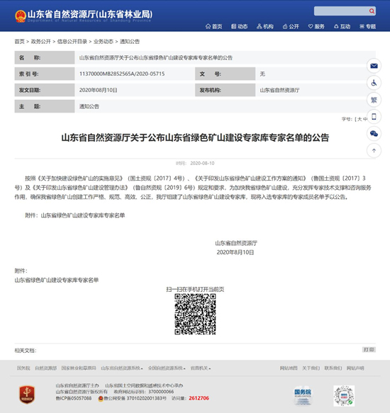 发布日期:2020-08-20 作者:山东总队近日,山东省自然资源厅组建了山东省绿色矿山建设专家库,山东总队车元宝、侯宇怀、孟燕、欧阳友和、王海成等9名人员成功入选为山东省绿色矿山建设专家库专家成员。