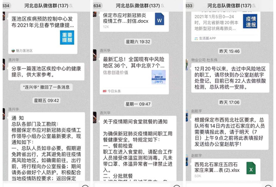 同时,总队还通过微信群,发布疫情防控最新消息以及防疫紧急通知,要求各部门切实做好疫情高、中风险地区来保人员的信息排查,全力打好疫情防控阻击战。