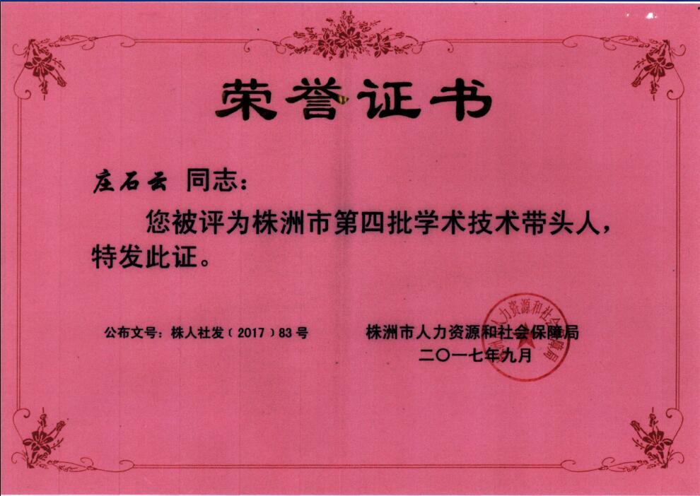 近日,株洲市人力资源和社会保障局公布了株洲市第四批学术技术带头人评审结果,湖南总队总工程师庄石云被评为株洲市第四批学术技术带头人。