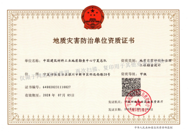 近日,宁夏总队顺利通过宁夏回族自治区自然资源厅的审核,成功取得“地质灾害评估和治理工程勘查设计甲级”和“地质灾害治理工程监理乙级”资质证书。两项资质的取得体现了宁夏总队地质灾害防治业务综合实力的进一步提高,将为宁夏总队进一步开拓地质灾害防治业务打下坚实基础。