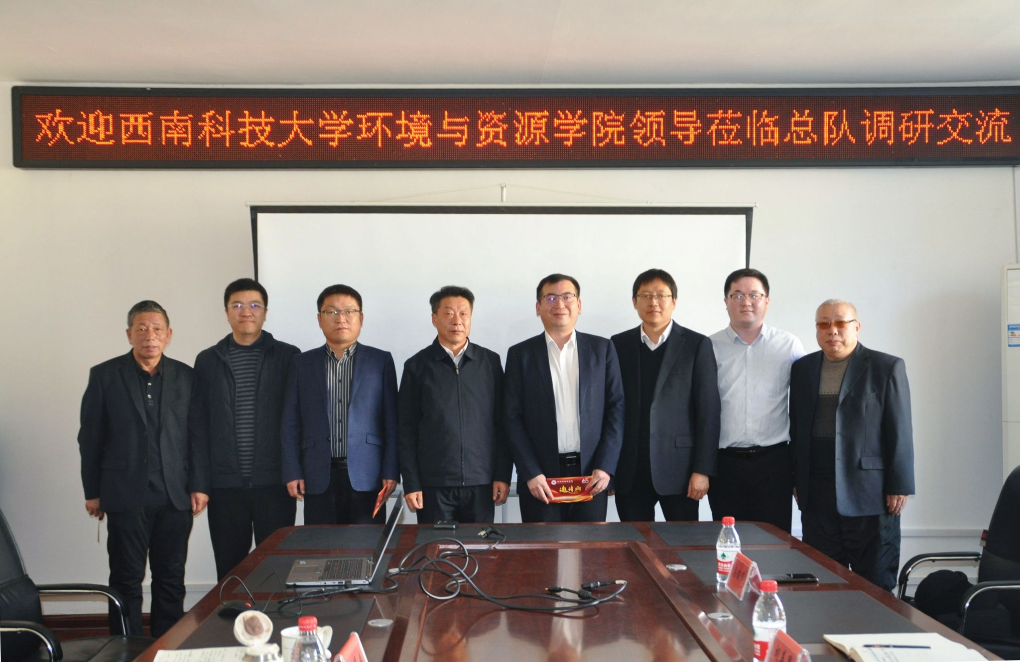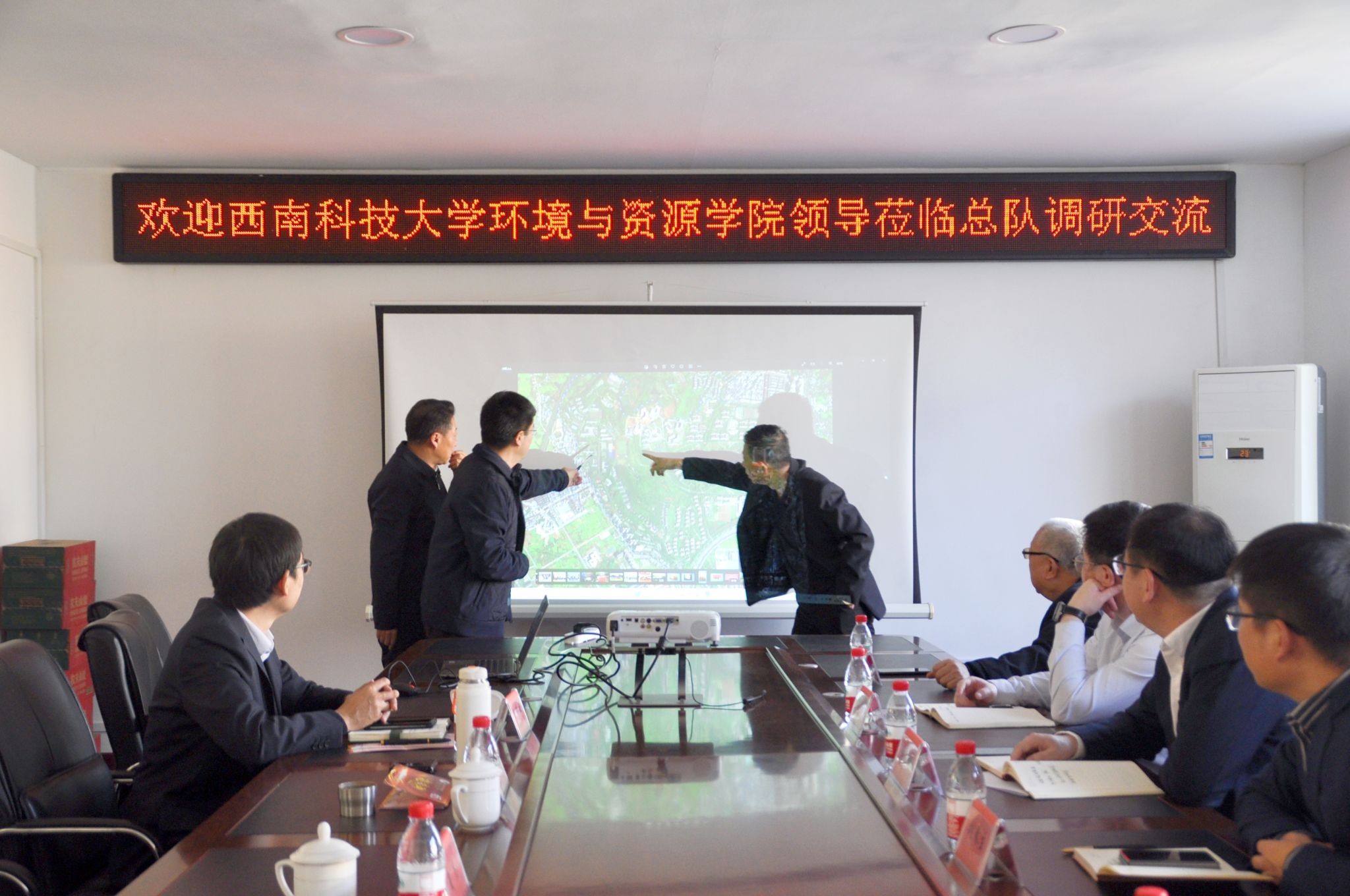 董来世对宋锦新一行的到来表示热烈欢迎,介绍了总队的发展历程、人员结构、业务范围,并感谢学校对专业人才的培养,他谈到,总队多年来,吸收了多名西南科技大学优秀毕业生,有的已经在总队领导岗位退休,现仍有4名优秀人才在总队专家级中层领导岗位,他们为总队的发展做出了突出贡献。