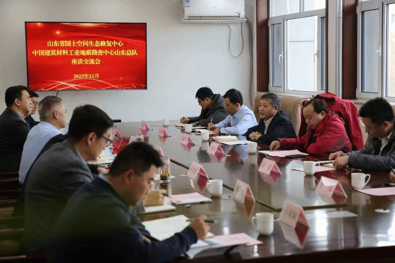 山东总队(有限公司)矿产院院长郭超、测绘院院长王猛、地理信息中心主任李伟,省生态修复中心党委委员、副主任朱晓伟,党委委员、副主任祝德成,地质灾害防治部副部长王庆兵、地质灾害防治部副部长姚英强、综合部办公室主任孙和颜、综合部科研工作站站长王元波、生态修复部生态监测评价所所长吕兰颂参加座谈。
