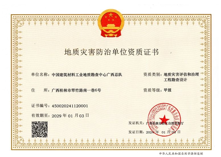 近日,广西总队地质灾害评估和治理工程勘查设计甲级资质成功延续。
