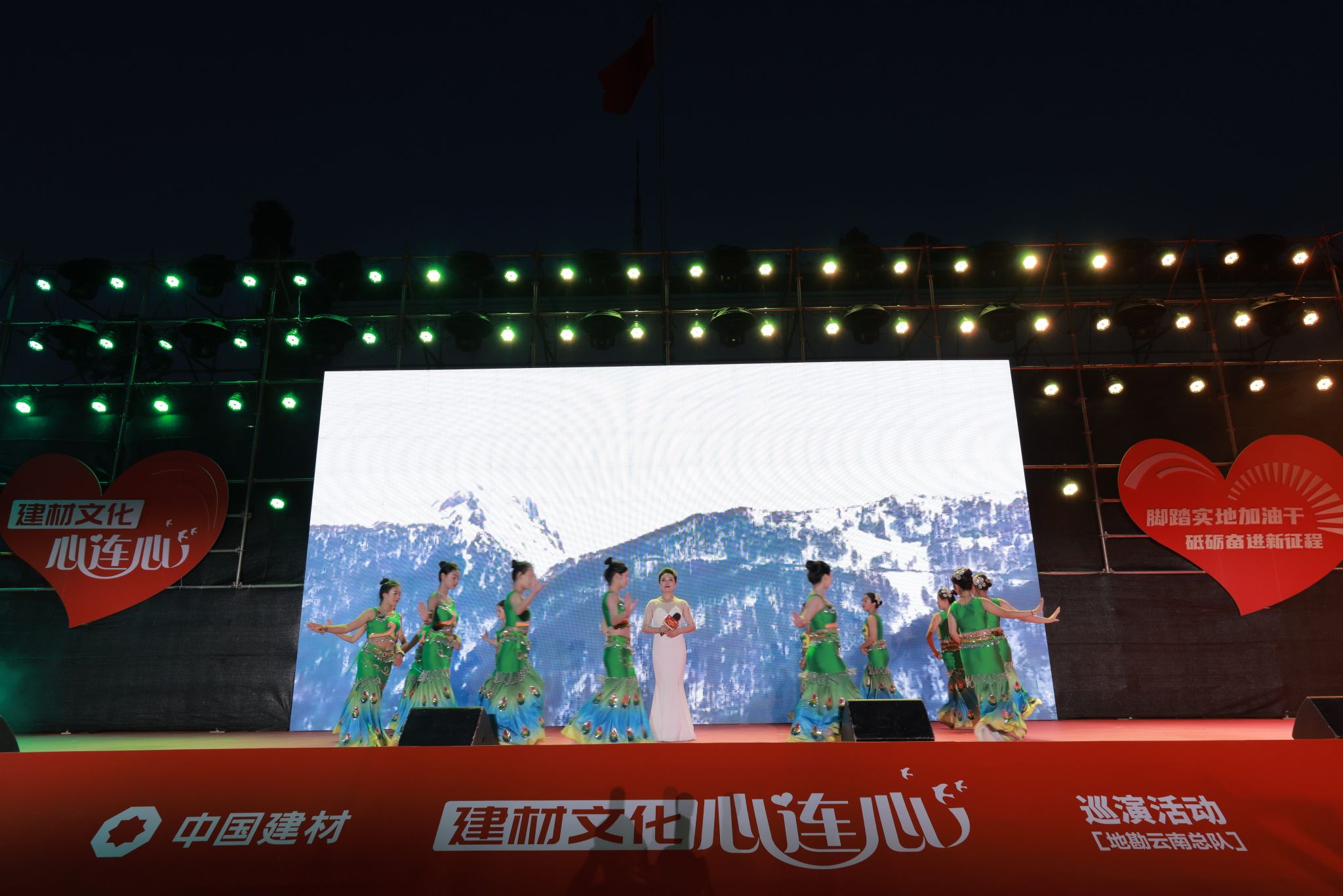 文化巡演随着中国建材装备集团带来的《盛世龙腾》拉开序幕,铿锵的鼓声、澎湃的旋律,震撼全场。地勘中心云南总队与昆明中专学校合作的《彩云之南》《竹竿舞》,向各界来宾展示了中国建材人所扎根六十余载的云南,其独特的自然风貌和民族风情,同时表达对现场观众的欢迎之情。祁连山水泥的相声《习惯性违章》,以幽默却不失严肃的方式,警醒每一个人“安全生产无小事”。福泉西南水泥的《出水莲》和云南远东水泥的快板《廉洁花开党旗扬》,弘扬浩然正气,将“廉洁”之美刻画于我们心间。地勘中心云南总队新老地质队员们用一曲《勘探队员之歌》,讲述了在云岭高原的深沟险壑中、在东南亚茂密无边的丛林里,用坚韧不拔的意志与精神,将“三光荣、四特别”精神代代相传,为保障国家资源安全持续贡献力量的奋斗故事。祁连山水泥带来的情景剧《初心》,将一名老党员的故事搬上舞台,展现了老一辈开拓者艰苦创业的峥嵘岁月。地勘中心青海总队《高原上的传承》呈现了高原地质人,在荒漠戈壁中“缺氧不缺精神”、迎难而上的奋斗精神和代代传承。中联水泥的快板说唱《我们都是追梦人》、北新建材和耀华集团青年员工带来的集团原创歌曲《材料江湖》、哈尔滨玻璃钢研究院的诗朗诵《材料创造美好世界》,用建材赤子心,唱响大国工匠情。中国建材集团自2014年起定点帮扶云南昭通市昭阳区、永善县、绥江县,助力乡村振兴发展。今天的昭通三产齐头并进,开创了高质量跨越式发展新局面。昭通的孩子们带来生龙活虎的《龙言凤语》,化身中国龙,以“又踏层峰辟新天,更扬云帆立潮头”青春壮志,向观众深切表达双向奔赴的帮扶情谊。