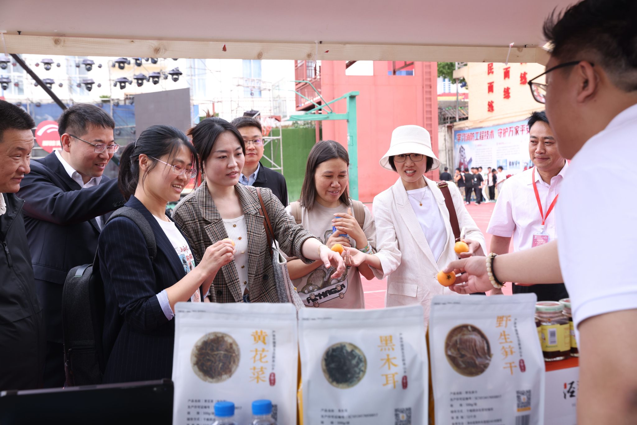 文化巡演分设的中国建材集团文创集市也是一大看点。中国建材集团的文创产品,以及来自集团乡村振兴电商平台禾苞蛋的农副产品、山东工陶院的3D打印团队和地勘中心云南总队带来的文创产品、特色小吃等摆满了8个摊位,极大丰富了现场观众的文化体验,为巡演活动注入了新活力。集市摊位前人潮涌动,纷纷拍照打卡,多个产品销售断货,好不热闹。