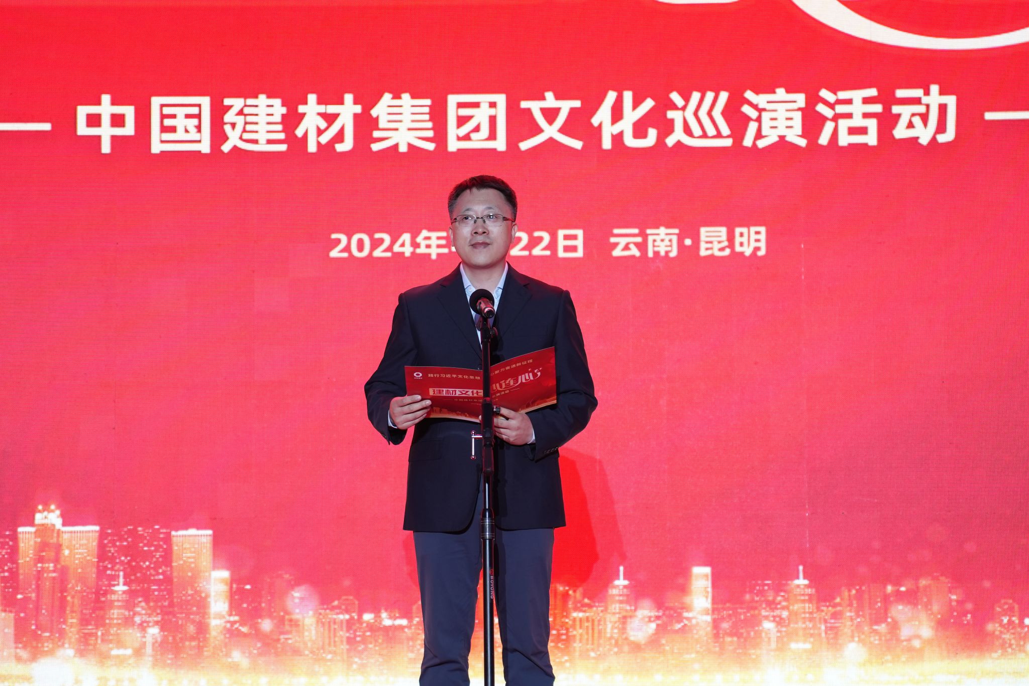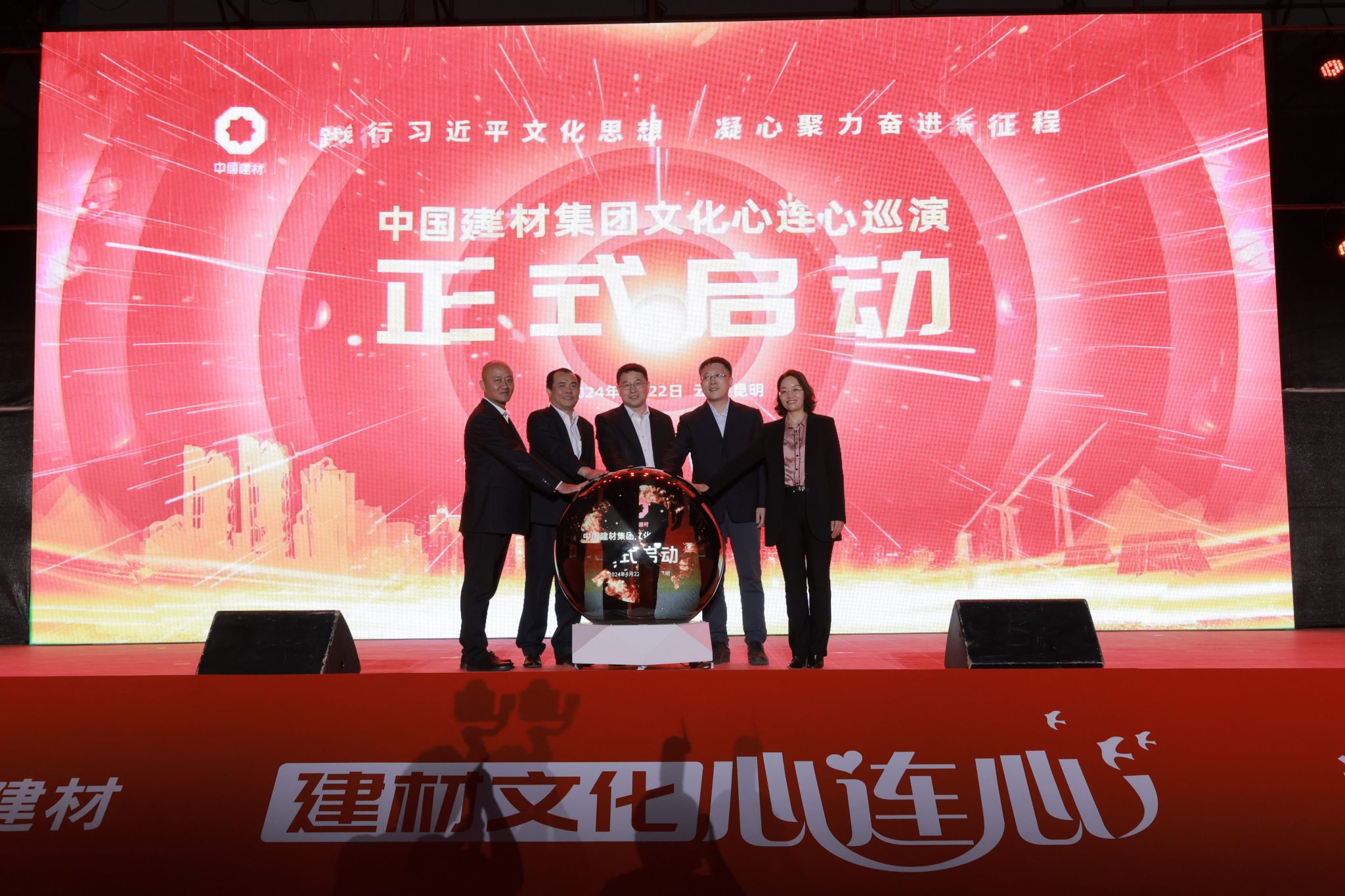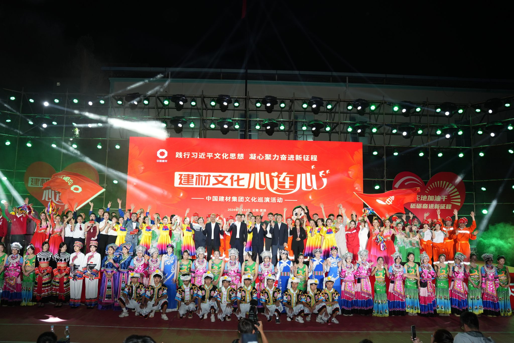 为深入学习贯彻习近平文化思想,营造庆祝新中国成立75周年的浓厚氛围,进一步增强集团文化凝聚力吸引力感染力,激发全集团高质量发展的磅礴力量,中国建材集团文化心连心巡演活动,4月22日在云南昆明正式启动,走进地勘中心云南总队。