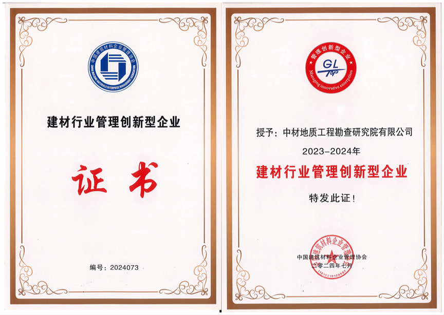 近日,由中国建筑材料企业管理协会主办的“2024年建材企业管理创新大会”在天津举行,地勘院申报的《战略引领 改革赋能 管理提效 以实干实绩推动高质量发展行稳致远》被评选为“2023-2024年度全国建材企业管理创新成果典型案例”,地勘院荣获“建材行业管理创新型企业”荣誉称号。