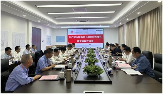 10月29日,中非高岭茂名新材料有限公司年产60万吨高岭土功能材料项目顺利通过竣工验收,标志着公司年产60万吨高岭土功能材料项目建设圆满落幕,也代表着公司在高质量发展进程中实现了里程碑式的新跨越。中国建材集团组织成立由外部专家、地勘中心相关人员等20余人构成的验收委员会参加了项目竣工验收,公司党支部书记、董事长、总经理张北平陪同验收。