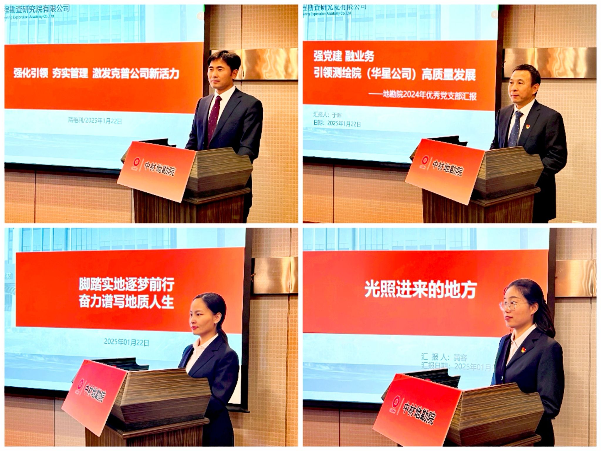会上表彰了地勘院2024年度先进集体、优秀中层干部、先进个人、安全环保先进工作者、先进党支部、优秀支部书记、优秀党员、优秀工会干部。