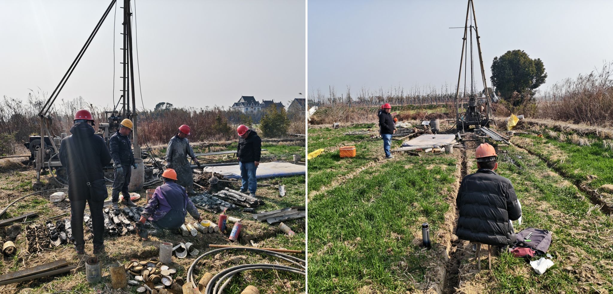 项目开工首日,项目组迅速进入工作状态,对现场机械设备进行全面细致地检查,确保设备性能良好,能够满足野外作业需求。同时,深入分析安全隐患风险点,全面排查事故隐患,并对机台人员开展了系统的安全培训,为安全复工奠定良好基础。现场6台钻机、2台触探等机械设备“火力全开”,后续20余台钻机也在奔赴项目的途中,施工人员有条不紊地进行施工。
