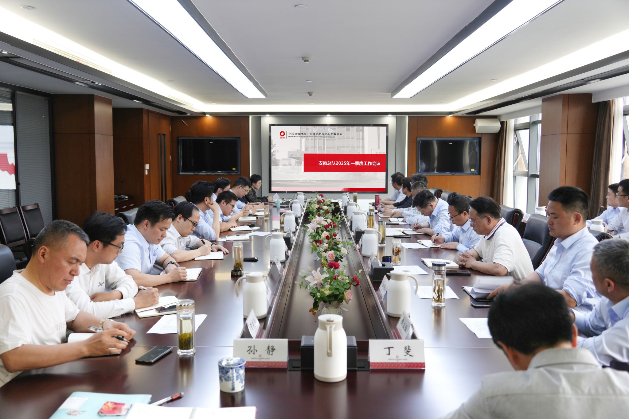 4月21日,安徽总队召开2025年第一季度工作会议。会议传达了地勘中心一季度工作会议精神,分析和总结了各生产经营部门、职能部门2025年一季度的工作完成情况,并对下一步工作做出部署和安排。党委书记、总队长詹建华及总队领导班子、中层以上员工出席会议,副总队长王宝平主持会议。