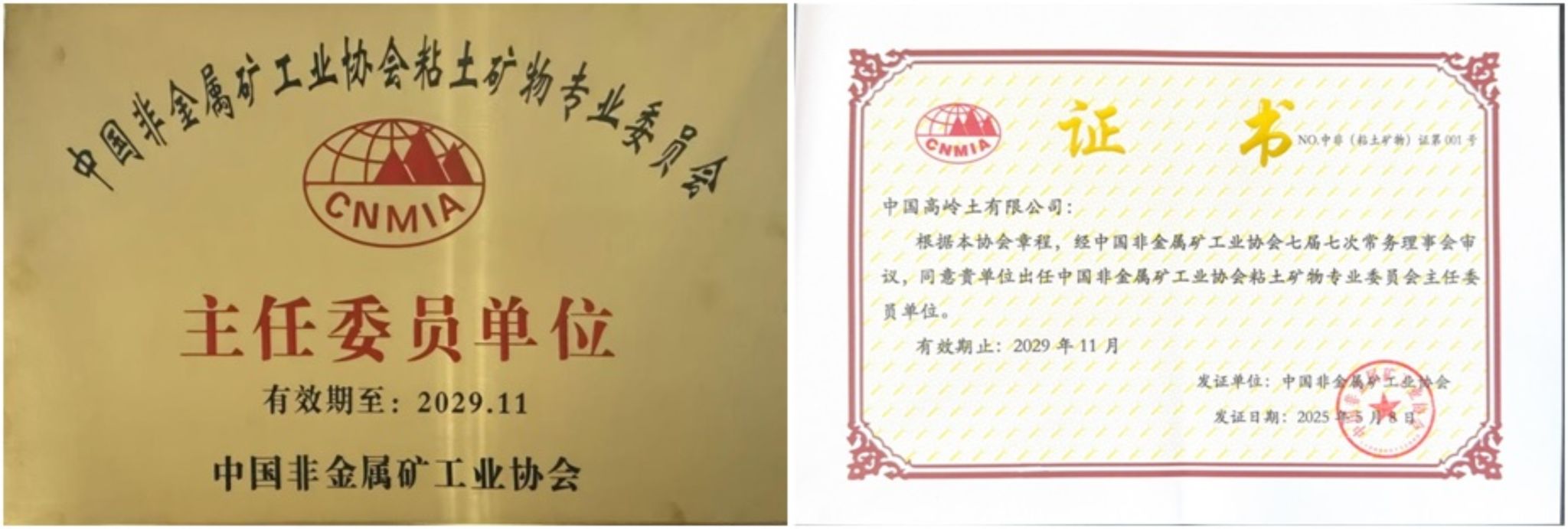 近日,中国高岭土有限公司凭借在高岭土领域扎实的技术实力、稳定的产品质量和专业的服务口碑,当选为中国非金属矿工业协会粘土矿物专业委员会主任委员单位。