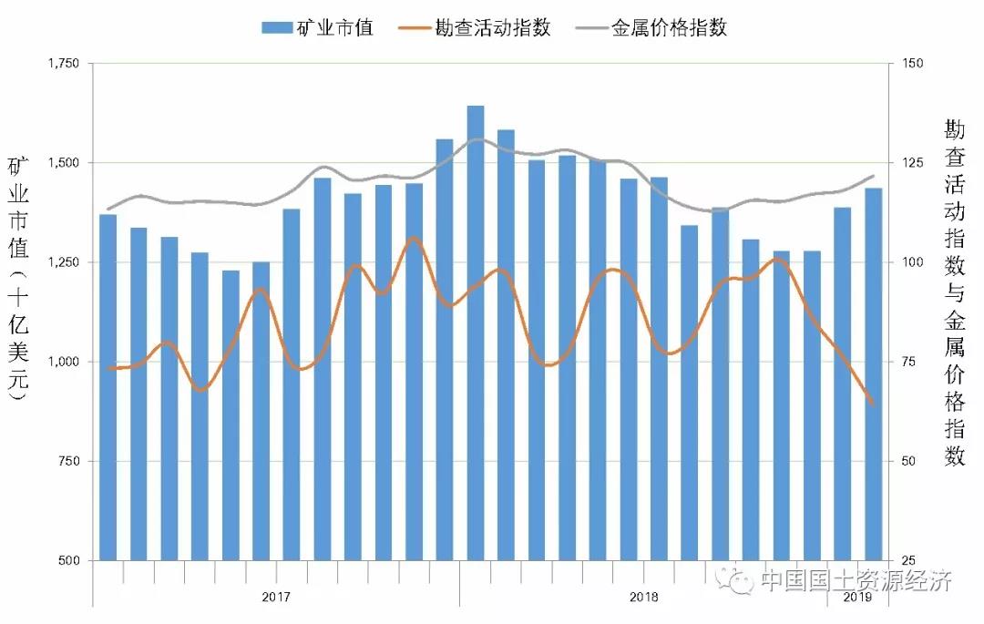 全球地质勘查活动指数连续回落。2016—2017年,全球经济缓慢复苏,矿业形势出现好转,全球地质勘查活动指数波动上扬。2018年,全球地质勘查活动指数大幅波动,年均值为89点。2019年1月和2月,全球地质勘查活动指数连续回落,分别为76点和64点。1—2月,重要钻探公告数量同比减少14%,新增资源价值仅为2018年同期的13%,初级和中级勘查公司完成融资金额同比减少86%。总体来看,2019年年初的全球地质勘查市场发展势头不容乐观(见图1)。