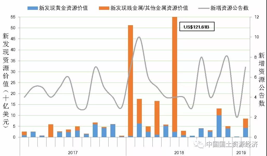 重要钻探公告数量同比减少14%,新增资源价值仅为2018年同期的13%。2019年1月和2月,全球钻探活动公告数量分别为259项和201项,同比减少5%和24%。2019年1月和2月,全球新增资源公告数分别为2项和7项,总价值分别为3亿美元和85亿美元,仅为2018年同期的0.6%和49%(见图2)。