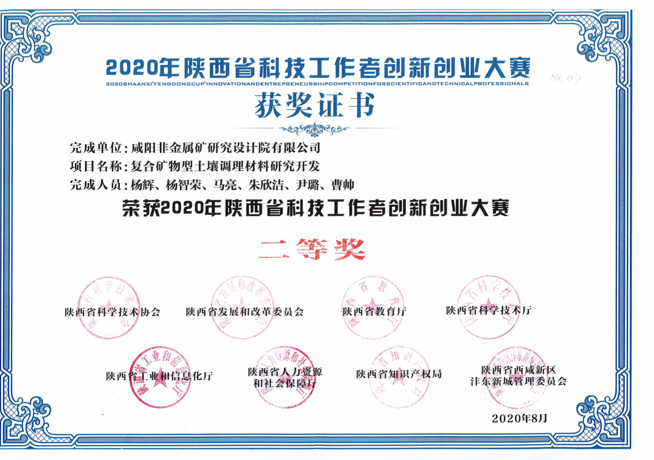 坚定执着的追求,绽放着绚丽的花朵,结出了累累硕果。主持参与的“高耐蚀预水化膨润土防渗材料制备技术研究及示范”获得中国建材集团科学技术奖二等奖,“商洛低品位钾长石高效开发利用研究”获得中国建材集团技术革新奖一等奖,“复合型土壤调理材料关键技术研究及产业化应用示范”获得了中国建筑材料工业地质勘查中心科学技术奖二等奖、非金属矿科学技术奖三等奖,“复合矿物型土壤调理材料研究开发”获得陕西省科技工作者创新创业大赛二等奖,“环保型非金属矿物功能净水材料研究开发”获得陕西省建材行业技术革新奖二等奖。