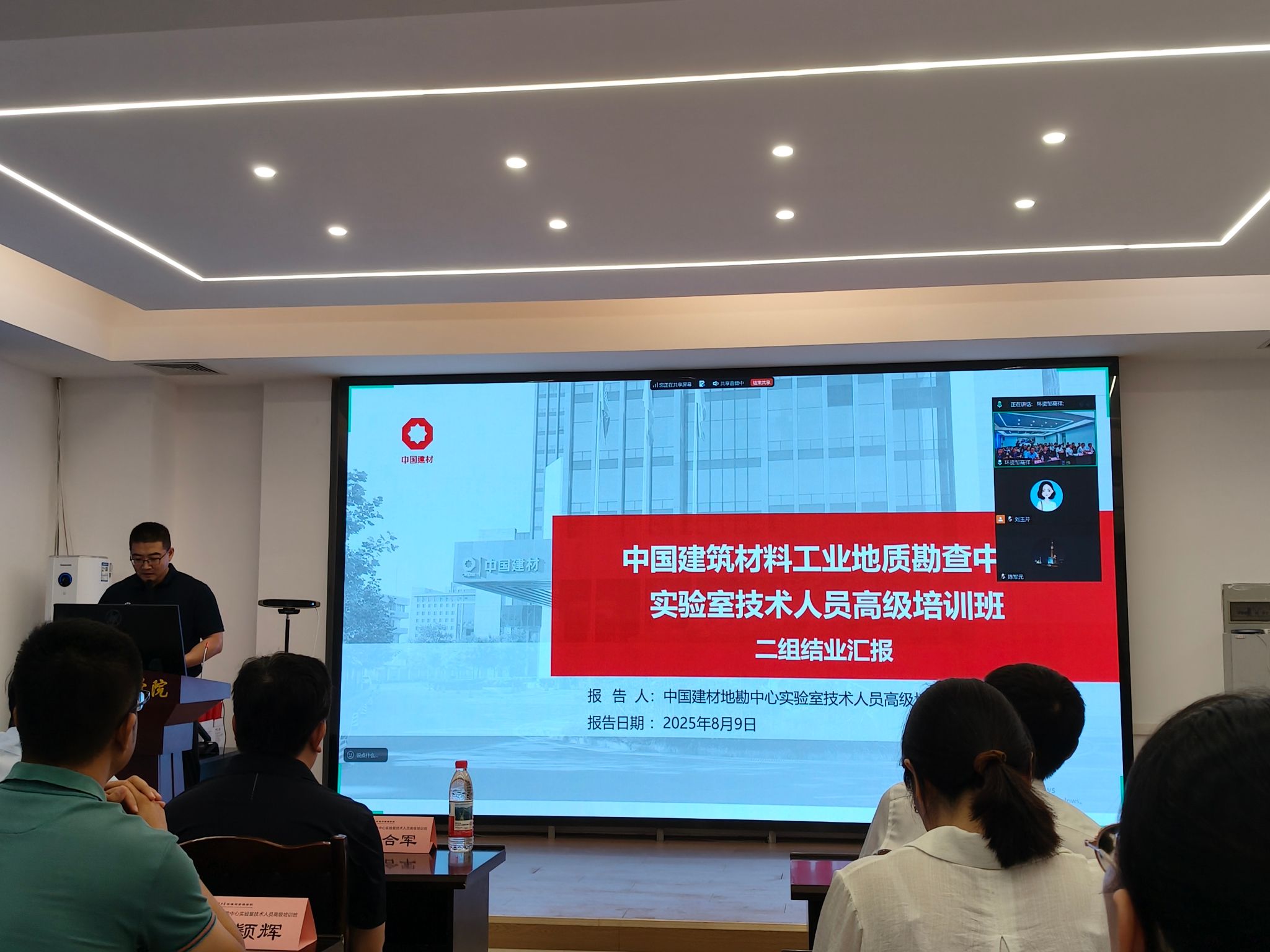韩京增作为小组代表,做了题为“提高实验检测研发能力,助力中国建材创新发展”的结业汇报,探讨了如何通过标准与方法、实验室间比对、智能数据分析、地质实验数据库、药剂合成与改良、边坡监测、矿床成因等七个方面的创新,推动技术进步和质量提升。