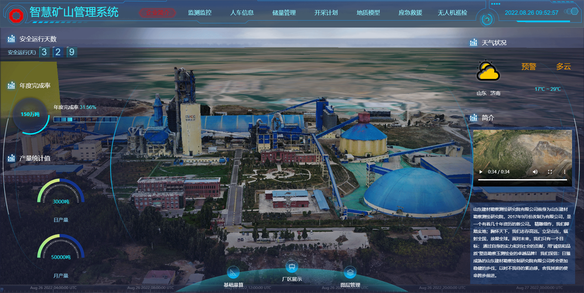 智慧矿山管理系统由山东总队研发,可有效助力企业提质增效,提升企业综合竞争力,打造安全、协同、共享、高效的智慧矿山。该系统包括矿山三维管理平台和矿山储量管理平台两大核心模块,实现了矿山三维实景展示、人车综合调度、实时视频监控、储量分析管理、智能配矿分析、在线综合监测、自动安全巡检等功能。该系统相对于国内外同类产品具有专业化程度高、费用低廉、功能丰富、定制自由、扩展容易等多种优点。