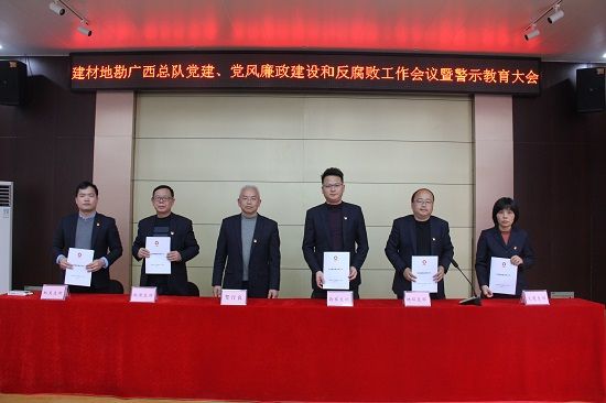 会上,贺行良代表总队党委与5个党支部签署了《广西总队2024年度党风廉政建设责任书》;观看了警示教育片《解决独有难题》。