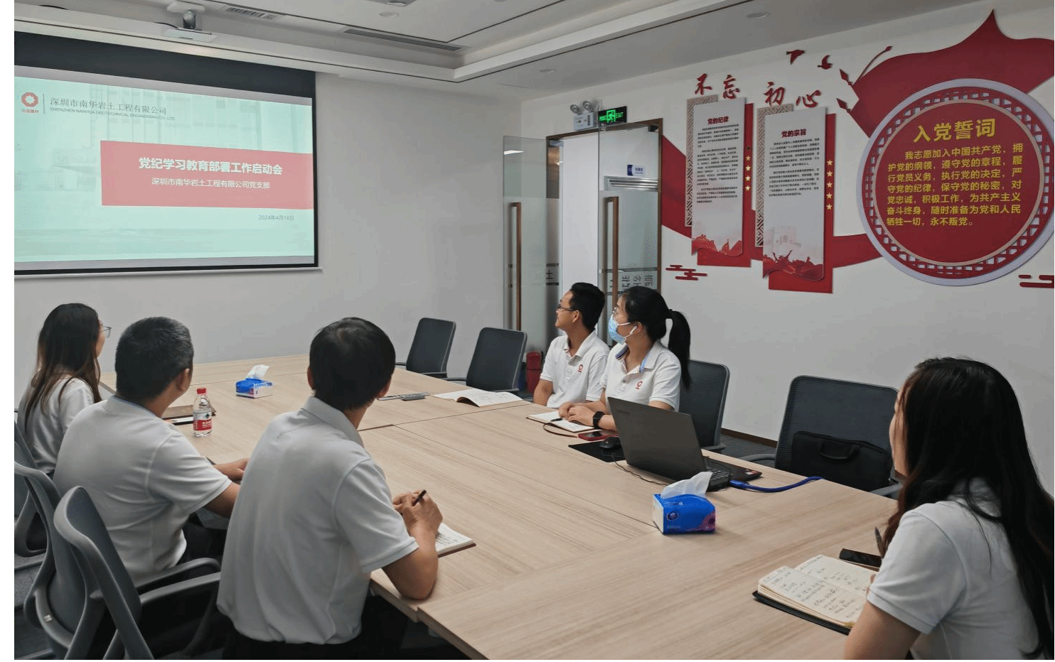 会议认真学习传达集团、中心和地勘院党委关于开展党纪学习教育的通知。部署全体党员要充分认识开展党纪学习教育的重大意义,紧扣学习贯彻《中国共产党纪律处分条例》、严格遵守党纪鲜明主线,精准发力、抓深抓实,充分利用“三会一课”、线上教育平台等形式系统深入学习。要抓住学习重点,坚持逐章逐条学,抓好以案促学、以训助学,准确掌握“六项纪律”的主旨要义和规定要求,进一步明确日常言行的衡量标尺;要加强警示教育,紧密联系实际,自觉对照《条例》规定查找廉政风险点,主动检视存在的问题,及时整改整治,真正使学习党纪的过程成为增强纪律意识、提高党性修养的过程;要力戒形式主义,真抓实干,以机关带系统,强化全面从严管团治团,以良好作风保证党纪学习教育走深走实。