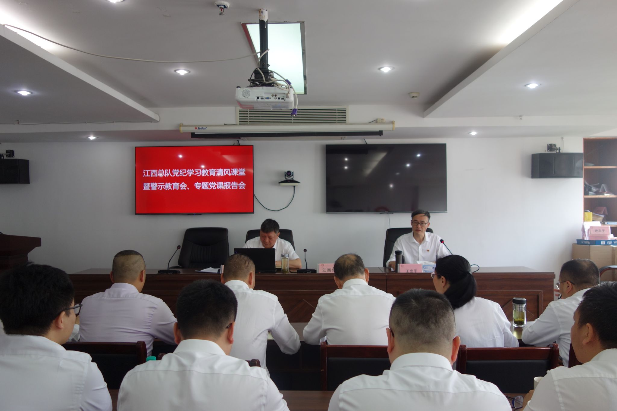 为推动党纪学习教育走深走实,2024年5 月 10 日,江西总队党委举办党纪学习教育清风课堂暨警示教育会、专题党课报告会,紧扣“学党纪”主线,组织党员、干部学习解读《条例》,开展警示教育。