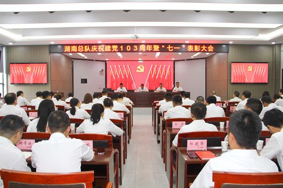 6月28日,湖南总队在多功能厅举行庆祝建党103周年暨“七一”表彰大会。会议由党委副书记、纪委书记李会洋主持,领导班子、全体党员、积极分子、中层干部共计80余人参加会议。