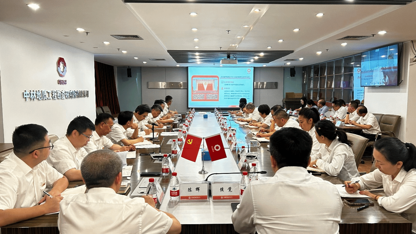 会议采取现场+视频形式召开,地勘院领导班子成员、各党支部书记、纪检委员、管理部门主要负责人参加学习。