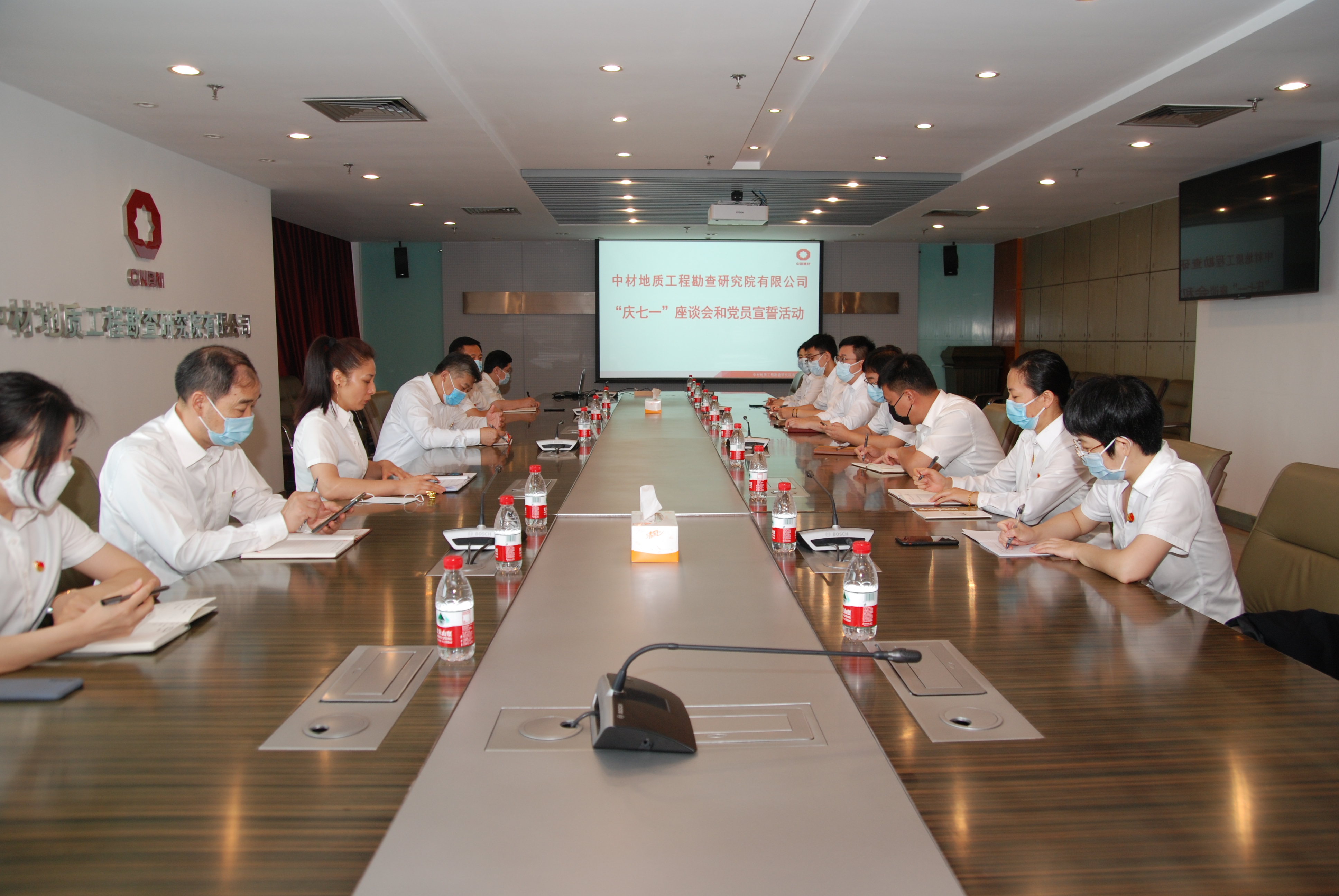 为庆祝中国共产党建党101周年,7月1日,地勘院院党委组织开展“庆七一”座谈会和党员宣誓活动,会议由地勘院党群工作部主任董冬青主持,地勘院党委书记兼董事长郭党生、党委副书记兼总经理王之军参加活动。