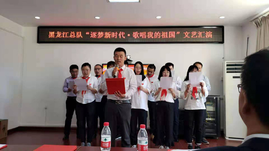 本次演出以部门、支部为单位,以合唱、独唱、表演、朗诵等多种方式,用饱满的热情倾诉着对祖国的爱恋!诗朗诵《伟大的祖国》、《我的祖国》、《歌颂祖国》不仅表达了对祖国的热爱,更展现了总队全体干部员工满怀壮志豪情去迎接新的挑战的信心;一首《走进新时代》歌声高吭,气势昂扬,更是将演出活动推向了高潮!整场演出气氛热烈,场下掌声不断,营造出了浓浓的节日气氛。