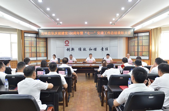 6月29日,吉林总队召开庆祝建党100周年暨“七一”党建工作总结表彰大会?;嵋橛勺芏拥澄笔榧?、纪委书记滕永伟主持。总队领导班子成员、各党支部书记、优秀共产党员等40多名党员参加了会议。