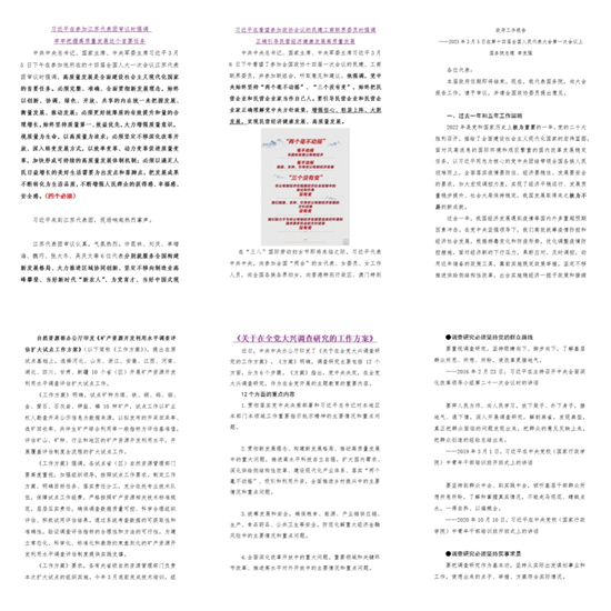 通过学习,大家一致认为,习近平总书记在全国两会期间发表的一系列重要讲话,深刻阐述了事关强国建设、民族复兴的一系列重大理论和实践问题,为推进中国式现代化指明了前进方向。与会成员立足分管业务领域,结合国家当前形势和上级决策部署,围绕“高质量发展”、“深入调查研究”等主题进行交流研讨。会议指出,加快科技自立自强,促进科技成果转化,不仅是贯彻党中央和上级决策部署,也是地质行业自身发展的需要。安徽总队作为地勘单位,要深化认识提高站位,紧盯市场需求,加强科技攻关,强化矿产勘查的科技支撑,争取在新一轮找矿突破战略行动中发挥更大作用。