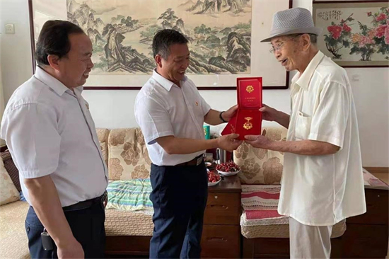 刘海泉向离休干部武传文转交了中共中央印制的“光荣在党50周年”纪念章,他表示,总队党委一直心系老党员,正值迎来中国共产党百年华诞,特向总队老党员们致以崇高敬意和衷心祝福,感谢他们为地质事业、为总队发展做出的贡献。李振来询问了老党员们的身体情况,表示在生活上有困难、有诉求要及时反映,总队将积极为老党员、老职工做好服务工作。
