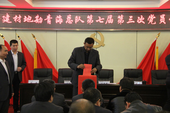 会上,总队长王庆文宣读了《中共青海省政府国有资产监督管理委员会党委关于同意中共建材地勘青海总队委员会召开党员代表大会补选党委委员的函》,与会代表审议通过了《中国共产党建材地勘青海总队第七届党员代表大会第三次会议选举办法(草案)》及选举会议总监票人、监票人名单。大会以无记名投票方式,选举产生了党委增补委员。