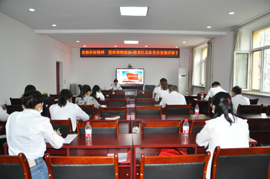 机关党支部书记崔红梅作题为《弘扬长征精神 坚定理想信念》党课,用时60分钟。内容突出弘扬长征精神,身心践行长征精神,将总队党员在疫情防控阻击战中的坚定信念、迎难而上的担当精神作以宣传讲述。