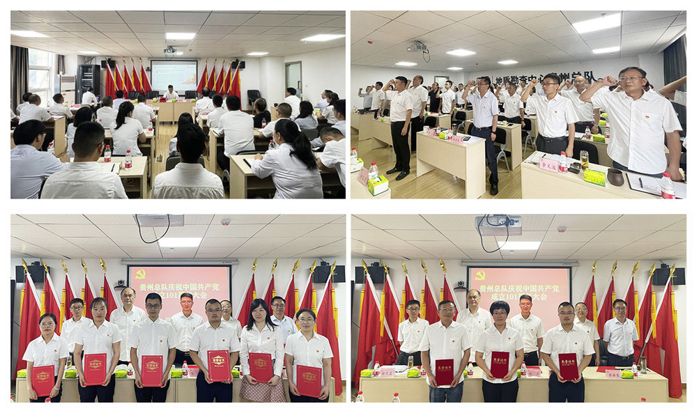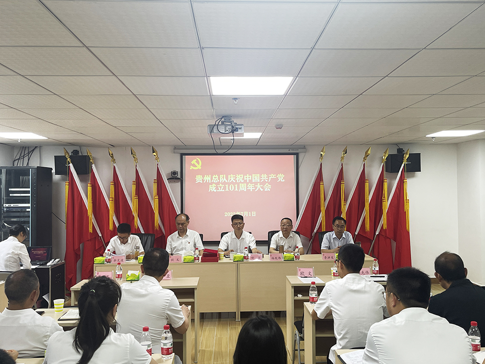 为庆祝中国共产党成立101周年,深入贯彻学习习近平新时代中国特色社会主义思想,进一步压实全面从严治党主体责任,激励广大党员立足岗位、争优创先,以优异的成绩迎接党的二十大胜利召开。7月1日,贵州总队召开主题为“奋进新征程,建功新时代”庆祝建党101周年主题党日活动,会议由党委副书记李洪发主持。