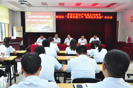 7月1日,江苏总队召开庆祝中国共产党成立99周年暨总队“加强党建工作 保障经济发展”研讨会。会议安排优秀共产党员作交流发言,四个党组织书记讲党课,并组织党员同志重温入党誓词。会议由党委副书记、纪委书记蒋敏主持。