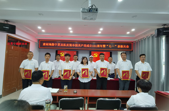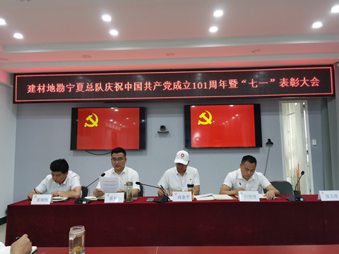 7月1日,在雄壮的国歌声中,中国建材地勘中心宁夏总队庆祝中国共产党成立101周年暨“七一”表彰大会在总队会议室隆重召开。