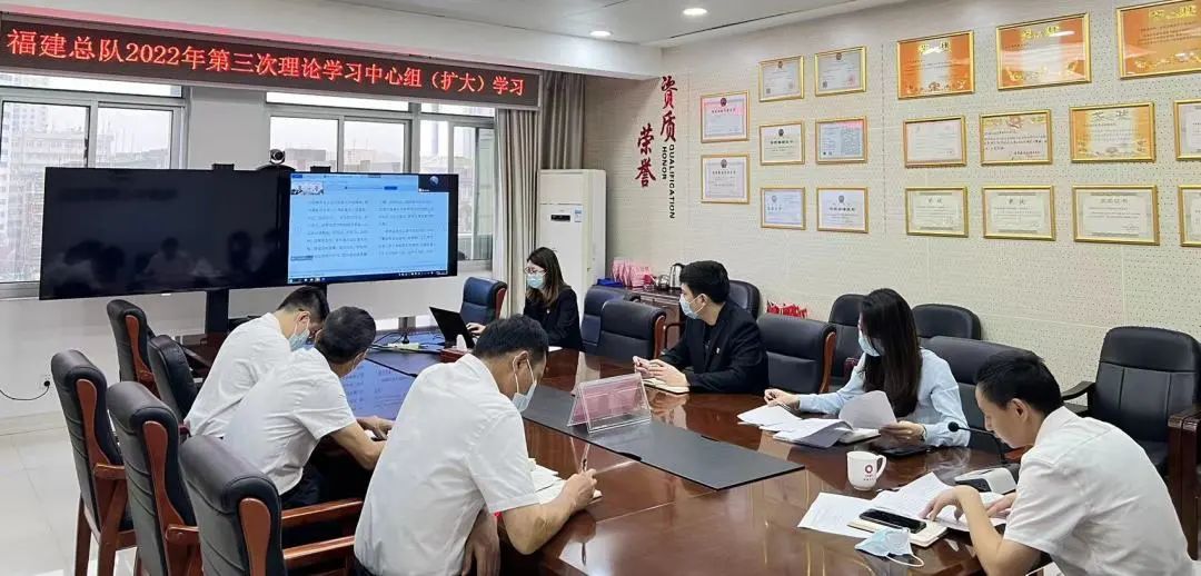 6月10日,福建总队党委理论学习中心组开展2022年度第三次集体(扩大)学习,会议由党委书记、总队长徐助龙主持,总队党政领导班子、党支部书记参会。