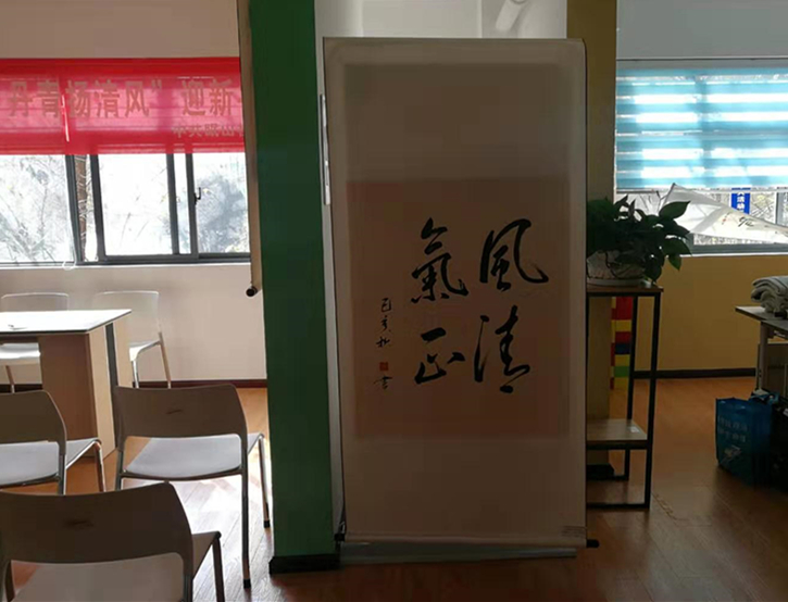 在廉政书画展览中,温智贤同志选送的《风清气正》、《尘无垢》两幅书法作品被选中,与社区其他书画爱好者代表作品三十余幅一起展出。参展当天现场还举行了书画笔会,十余名书画爱好者楔合新时代中国特色社会主义和反腐倡廉主题,现场尽兴挥洒创作,展现了时代特色和浓郁的文化氛围。黑林铺街道办事处相关领导及部门负责同志与及辖区居民百余人参加了展览开幕活动。