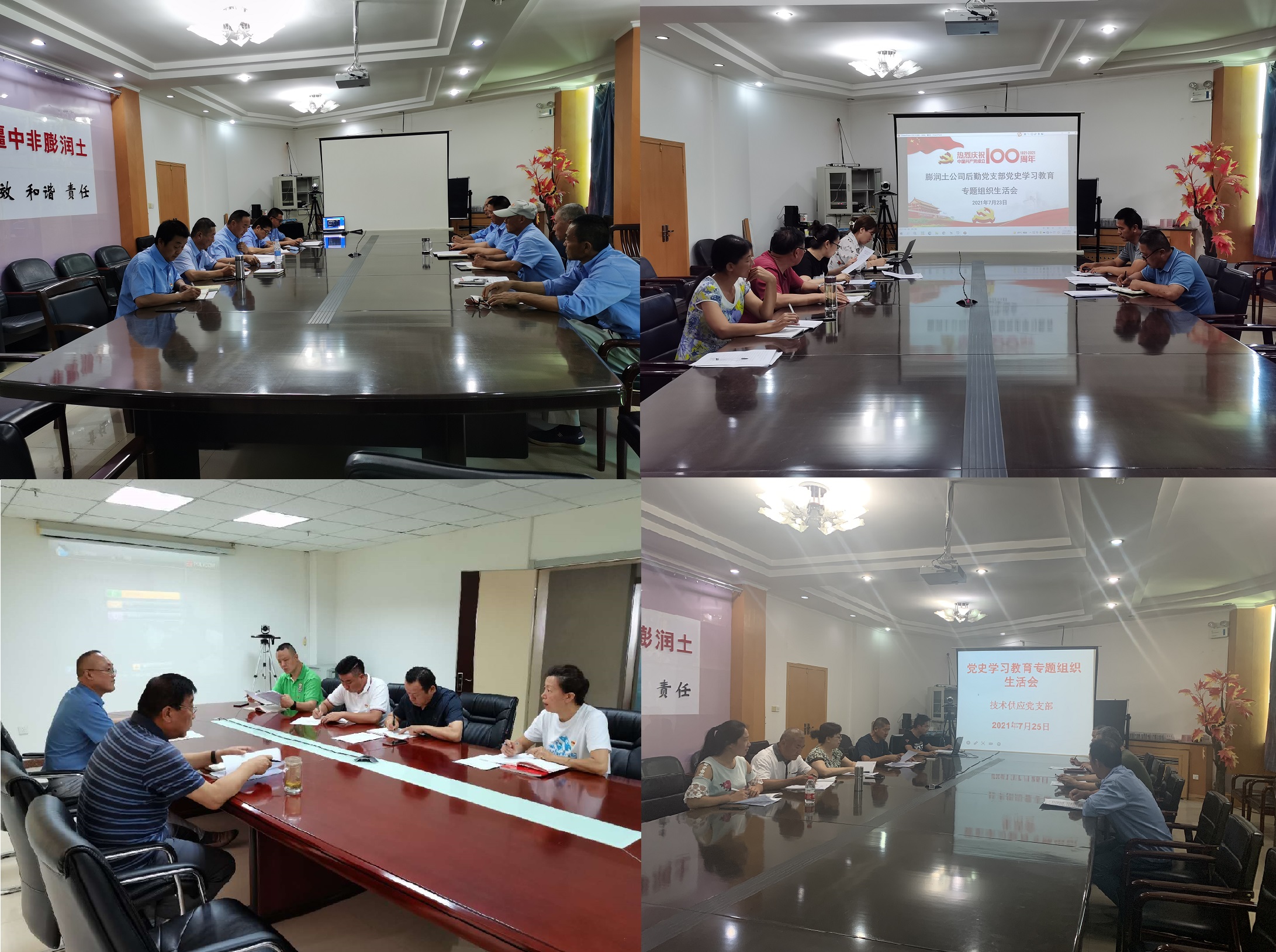 7月19日至25日,公司4个基层支部先后组织35名党员召开专题组织生活会。各党支部书记代表支部委员会向党员报告半年来党支部工作情况特别是开展党史学习教育情况,通报党支部委员会检视问题情况。各支部委员之间、党支部委员和党员之间、党员和党员之间开展交流学习发言,围绕学习习近平总书记在庆祝中国共产党成立100周年大会上的重要讲话情况、习近平新时代中国特色社会主义思想和上级党委指定学习材料情况谈了各自的感悟和收获。同时,对照党史学习教育目标要求,联系思想和工作实际,围绕自身在坚定理想信念、增强历史自觉、弘扬优良传统、加强党性锤炼等方面存在的差距和不足,以及党员先锋模范作用发挥怎么样,立足岗位履职尽责做得怎么样,为身边群众做了什么实事好事,还有哪些差距等方面进行了交心谈心。会议围绕多方面进行检视,开展批评和自我批评,提出了切实可行的整改措施,达到了相互提醒、交流提高的目的。