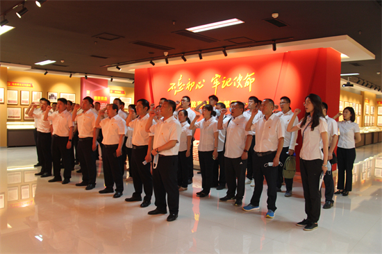 参加活动的全体党员参观了理论探索、理想信念、不懈奋斗、牢记宗旨、自身建设等五个展厅,重温了中国共产党艰苦奋斗并最终取得革命胜利的光荣历史。一张张历史手稿传递了共产党员的热血真情,一幅幅珍贵照片彰显了共产党员的铁骨忠魂。弥足珍贵历史档案和图片,展示了中国共产党对初心和使命的历史传承和生动实践,再现了中国共产党人为实现初心和使命前赴后继、英勇奋斗的光辉历程。全体党员凝神聆听,驻足细览,从珍贵的档案中探寻初心、感悟使命。最后,全体党员庄严肃立,高举右手,重温入党誓词。