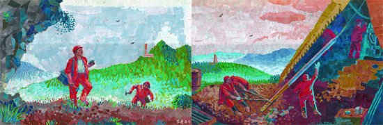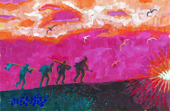 十九大前夕,李运正将精心创作的,反映建材地质工作者野外一线工作场景的七幅撕纸画送到总队党委,表达了自己的美好祝愿。这七幅撕纸画的主题分别是《迎着朝霞》、《选点》、《测绘》、《找矿》、《提钻》、《地形点》、《岩心分析》。作品古朴大气、意境高远,讴歌了我们建材地质工作者为了祖国的建设事业,跋山涉水努力工作的精神风貌。