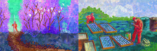 陕西总队退休职工李运正潜心书画创作,他独创的撕纸画以用手撕扯的各种形状和颜色的纸张为笔墨,融汉代石刻的古拙、金石的雅韵为一体,为传承和弘扬民间文化、展示劳动群众丰富多彩的工作生活场景提供了独特的艺术表现形式。二十多年来,李运正创作的多部作品在省内外获奖。