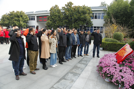 参观后,全体党员来到党旗前,心怀敬意,缅怀先烈,重温入党时的铮铮誓言。