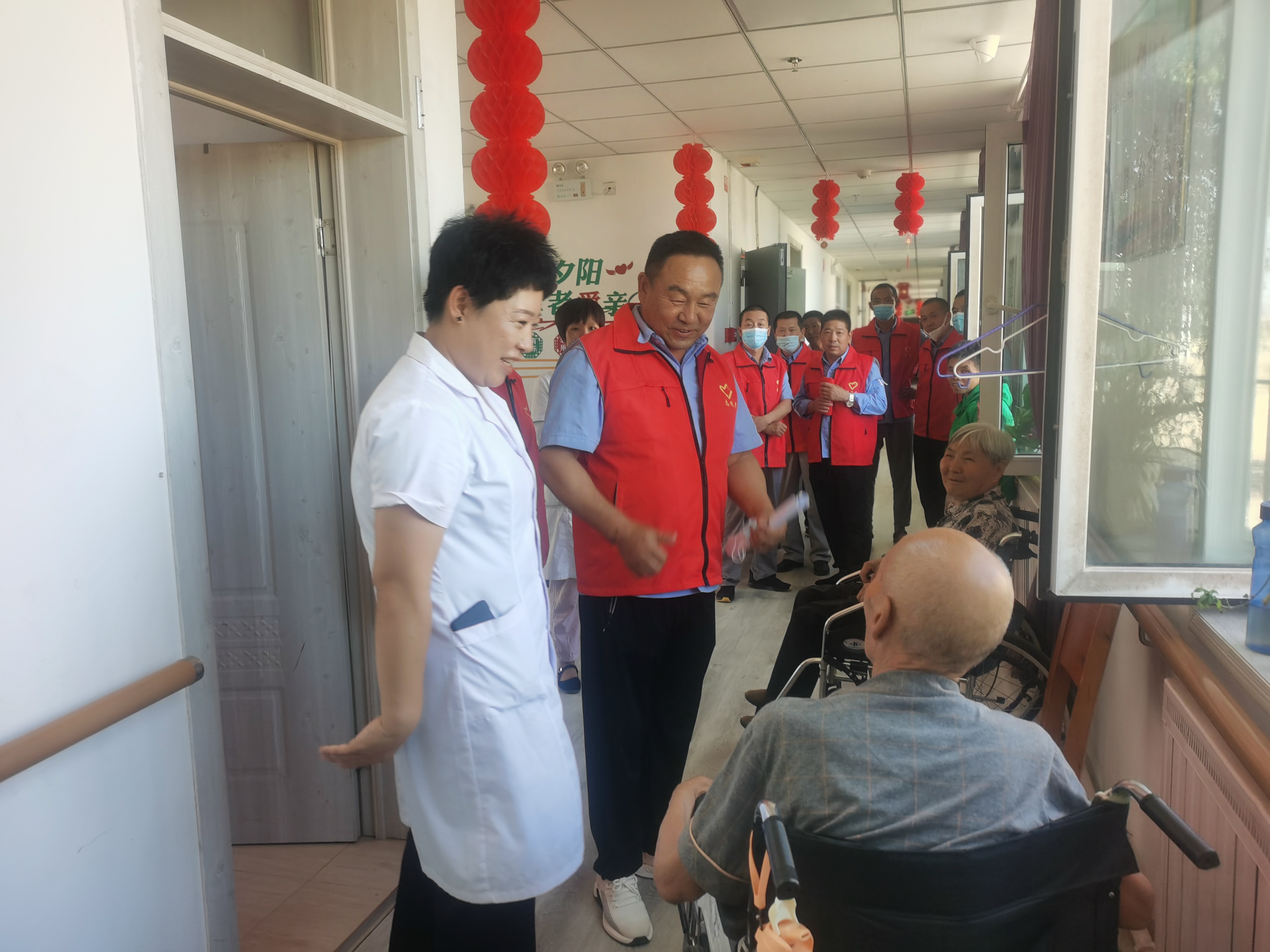 慰问过程中,184团养老院的老人有6-7个是党员,党龄都在30-50年,我们支部每一位党员和老人亲切交谈,拉家常,详细了解老人的身体状况和生活情况。叮嘱他们照顾好身体,安享晚年生活。和老人们的亲切交流,有一股暖流涌上心头,就好象和自己的父母一样,那么慈祥,那么和谒可亲,防姨叔叔们拉住我们的手,激动的哭了。