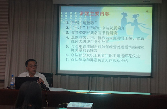 8月28日,农历七月初七,是我国传统的“七夕节”。总队组织单位领导、中层干部及职工代表,开展了2017年第三期“道德课堂”暨欢度“七夕节”活动。